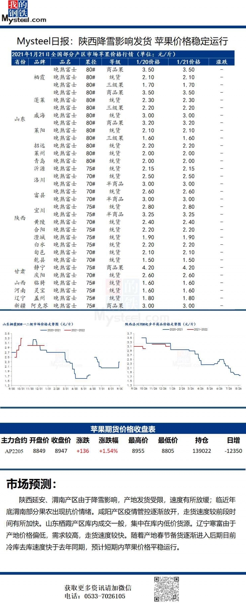 苹果现货价格比较稳定,春节备货基本结束,产区走货和去库较快,销区一般。拭目以待春节的走货情况,去年春节出现了一波走货小高潮,随后应声下跌。今年还有没有,不太清楚,但是该炒作的,还是得炒作。05苹果,近期别做空。